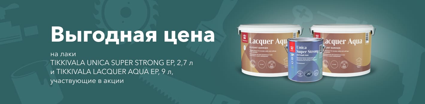 Выгодная цена на лаки TIKKIVALA UNICA SUPER STRONG EP полуматовый, 2,7 л, TIKKIVALA LACQUER AQUA EP матовый , 9 л и TIKKIVALA LACQUER AQUA EP полуглянцевый, 9 л