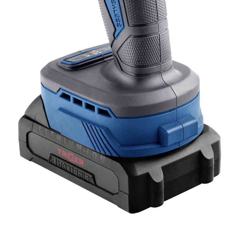 Дрель-шуруповерт Trigger 20121 - мощный бесщеточный шуруповерт с единой аккумуляторной платформой. Отсутствие щеточного узла приводит к уменьшению размера инструмента и увеличивает ресурс двигателя. Металлический 13 мм патрон с функцией Autofix позволяет заменять оснастку одной рукой и определять усилие ее фиксации по характерным щелчкам, а также использовать оснастку больших размеров.