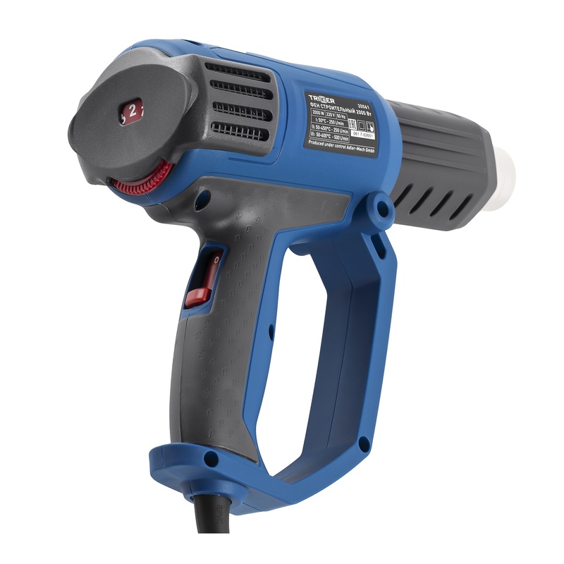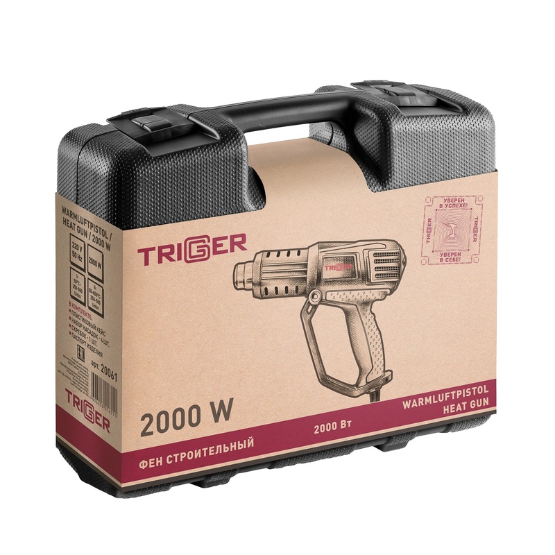 Фен строительный сетевой Trigger 20061, 2 кВт, 50-600°, 4 насадки, L кабеля=3 м, кейс в Самаре