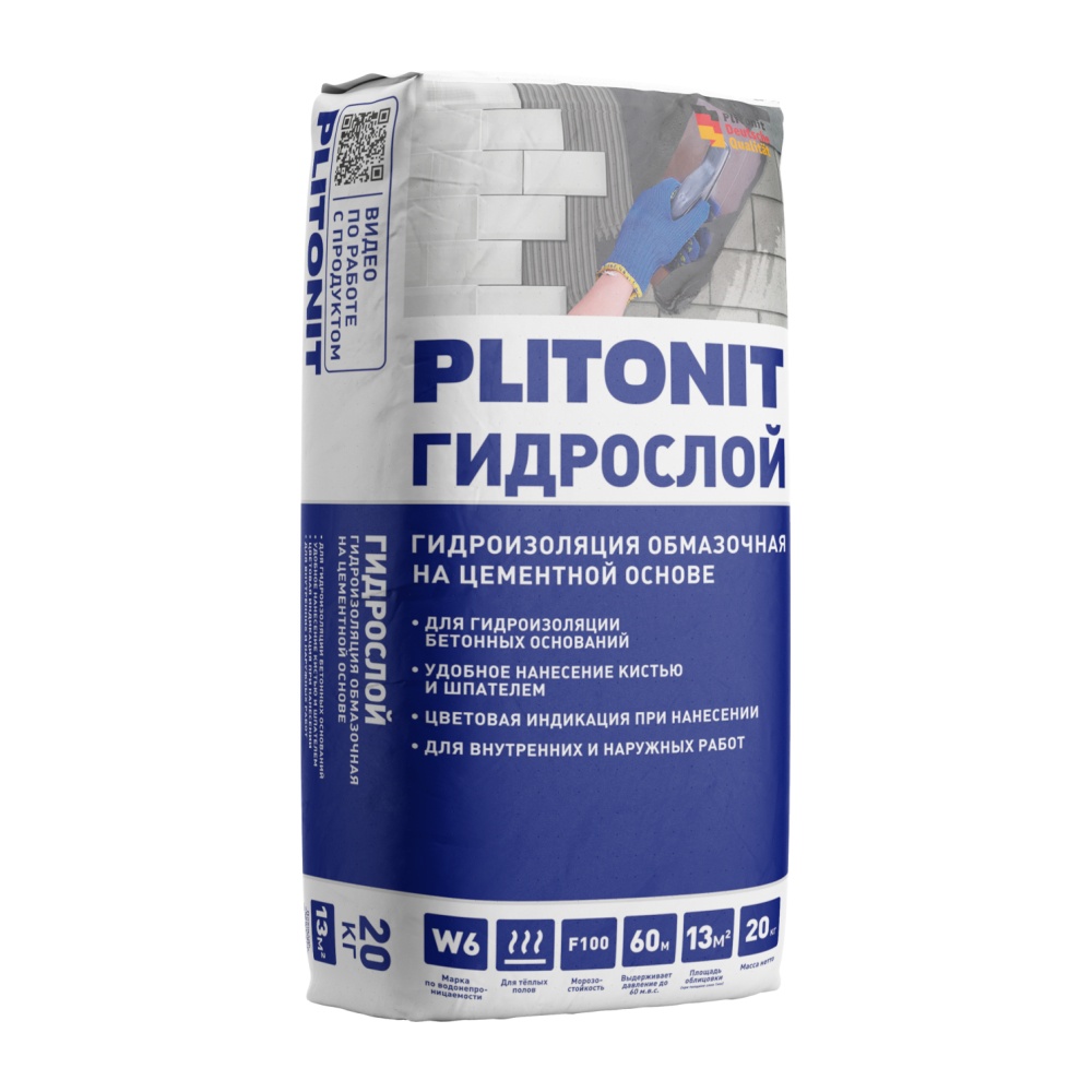 Гидроизоляция цементная обмазочная Plitonit Гидрослой, 20 кг