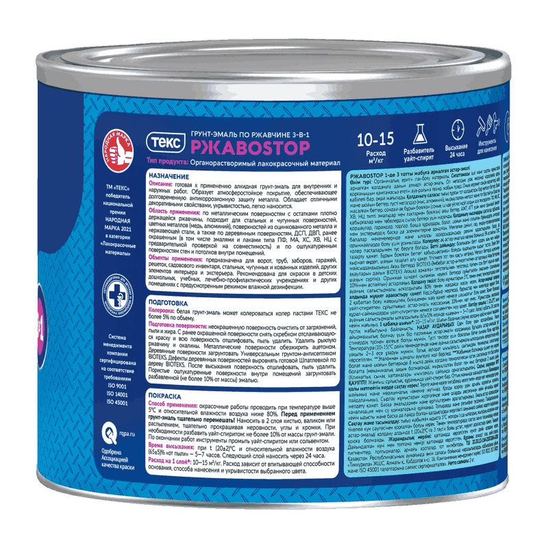 Грунт-эмаль по ржавчине Текс РжавоStop синий (2 кг)