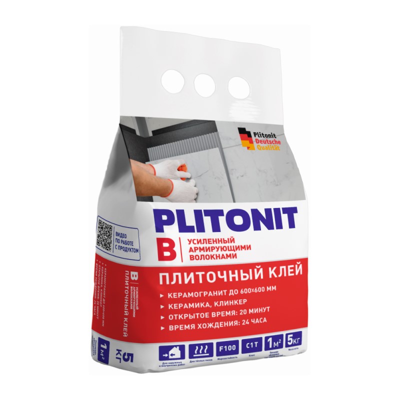 Клей для плитки усиленный Plitonit В для наруж/внутр работ (5 кг)