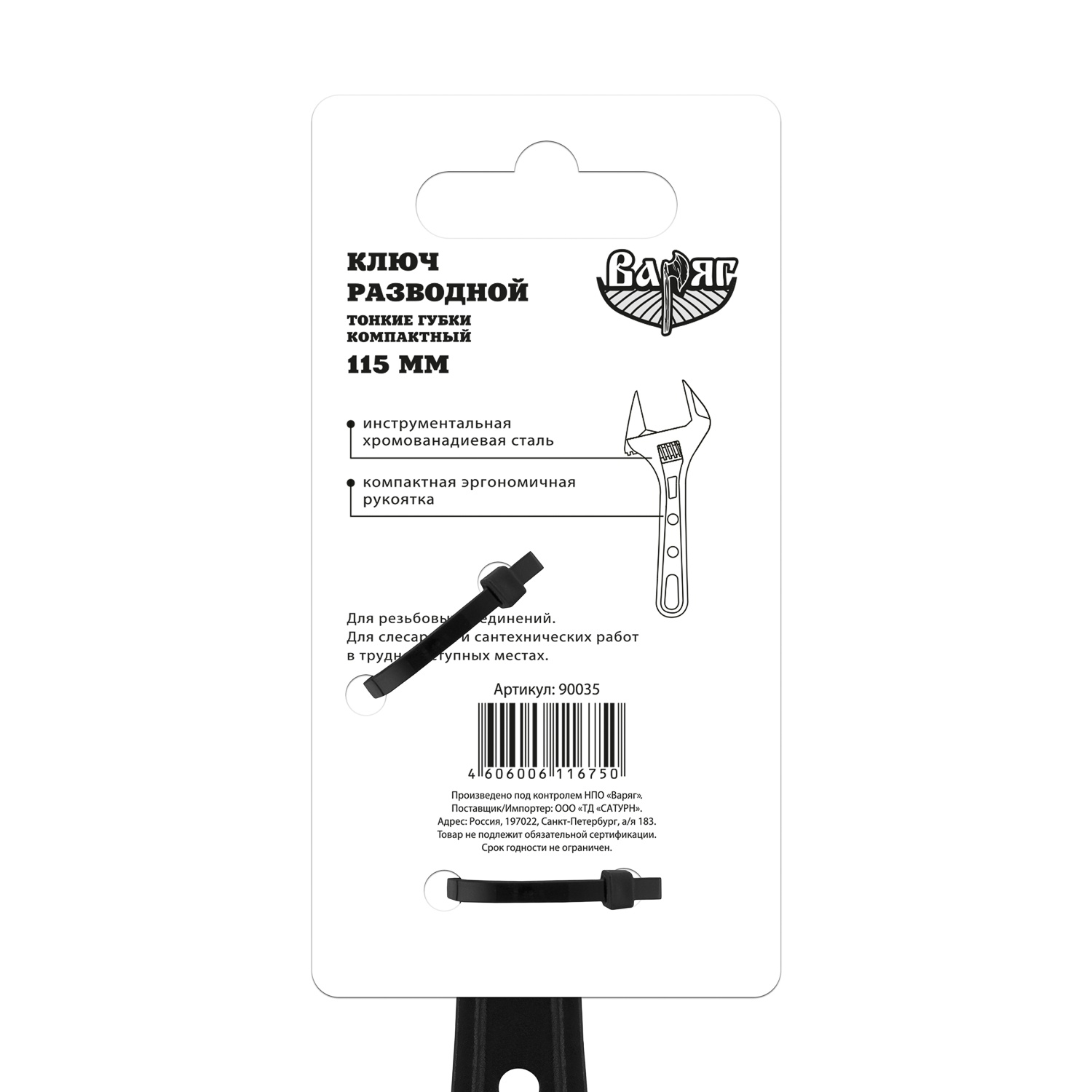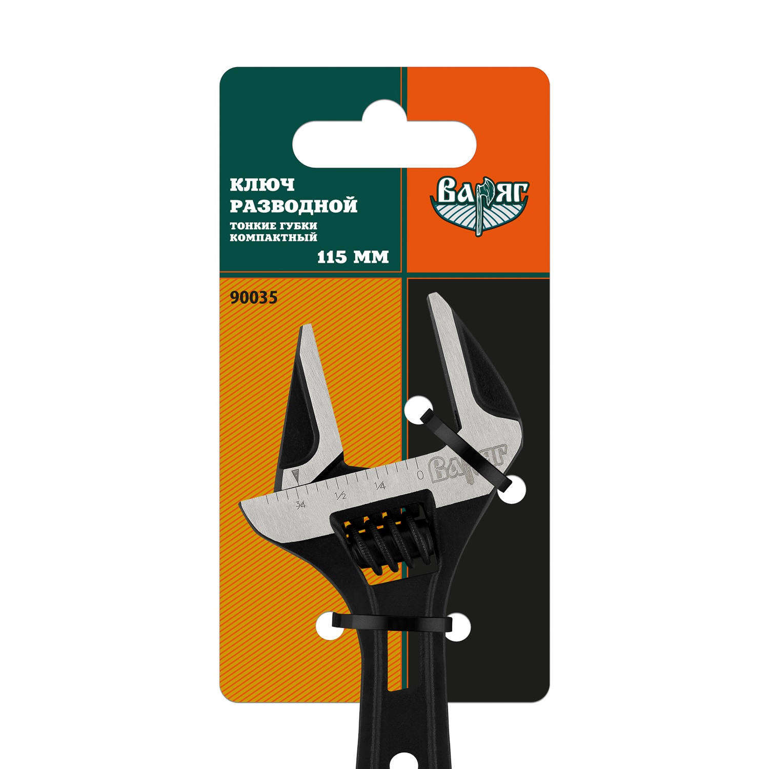 Ключ разводной Варяг 90035 тонкие губки компактный 115 мм