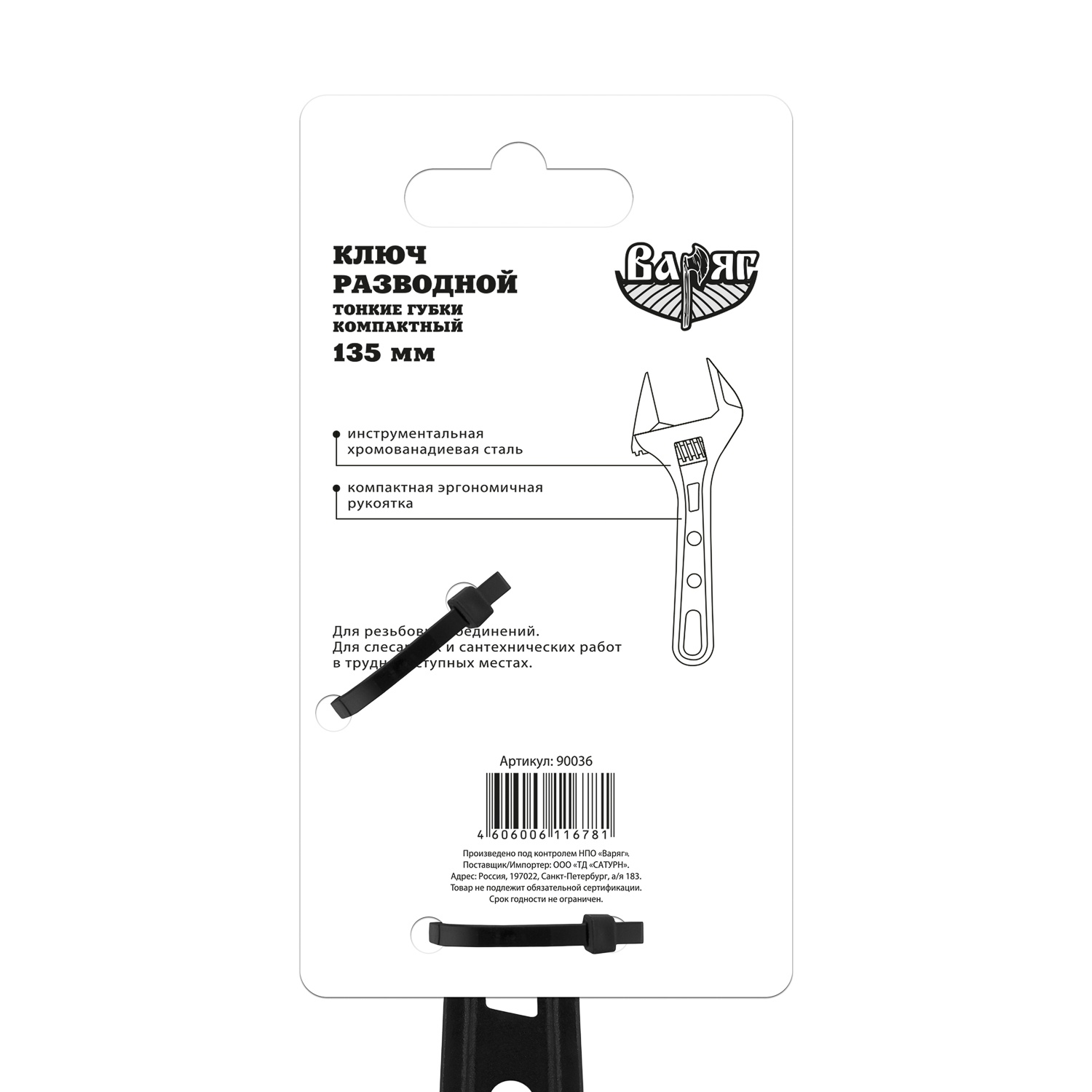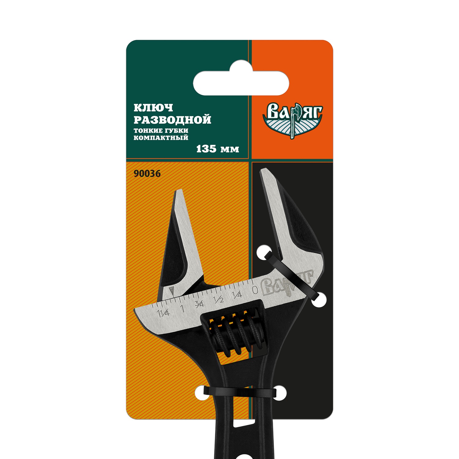 Ключ разводной Варяг 90036 тонкие губки компактный 135 мм