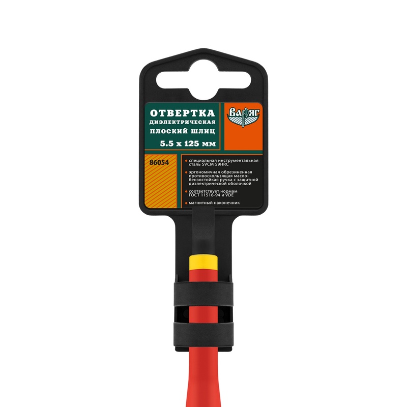 Отвертка Варяг 86054 диэлектрическая 1000В, SL 5,5х125 мм