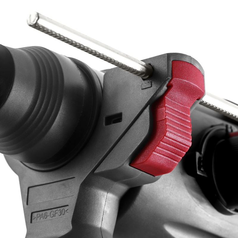 - В комплекте: переходник SDS+, цилиндрический патрон с ключом, дополнительная рукоятка, ограничитель глубины сверления, запасные щетки, пластмассовый кейс.
