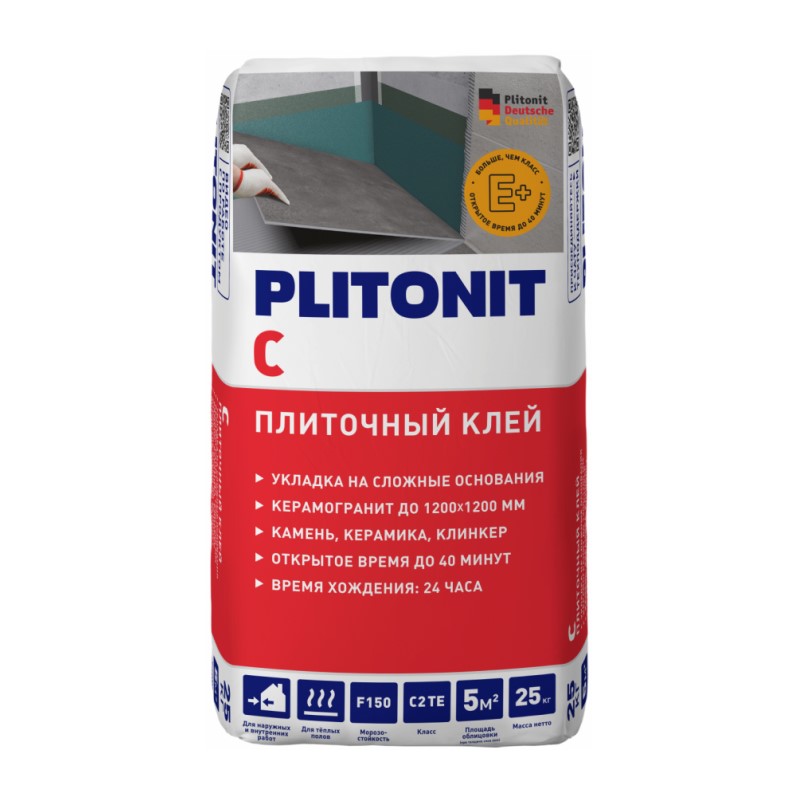 Клей ПЛИТОНИТ С предназначен для облицовки внутри и снаружи помещения всеми видами плитки на сложных поверхностях, таких как бетон, железобетон, ячеистый бетон, кирпич, цементные, известково-цементные и гипсовые штукатурки, гипсокартонные, пазогребневые, гипсолитовые плиты, окрашенные щелочестойкими красками, облицованные старой настенной и напольной керамической плиткой, цементно-стружечные плиты, основания, покрытые щелочестойкими красками, остающимися после удаления линолиумов и напольных ПВХ-плиток.