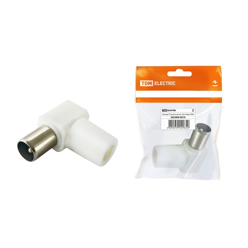 Штекер TV антенный пластиковый корпус, без пайки, угловой, белый