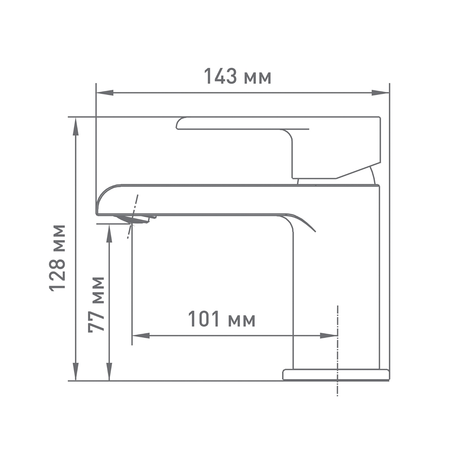 • Излив: Неповоротный, высота 7,7 см, расстояние до точки падения воды 10,1 см