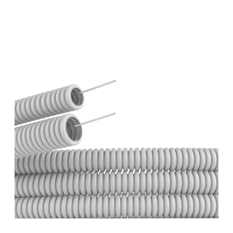 Труба гофрированная DKC ПВХ легкая с зондом, d=25 мм, серая (50п.м.)