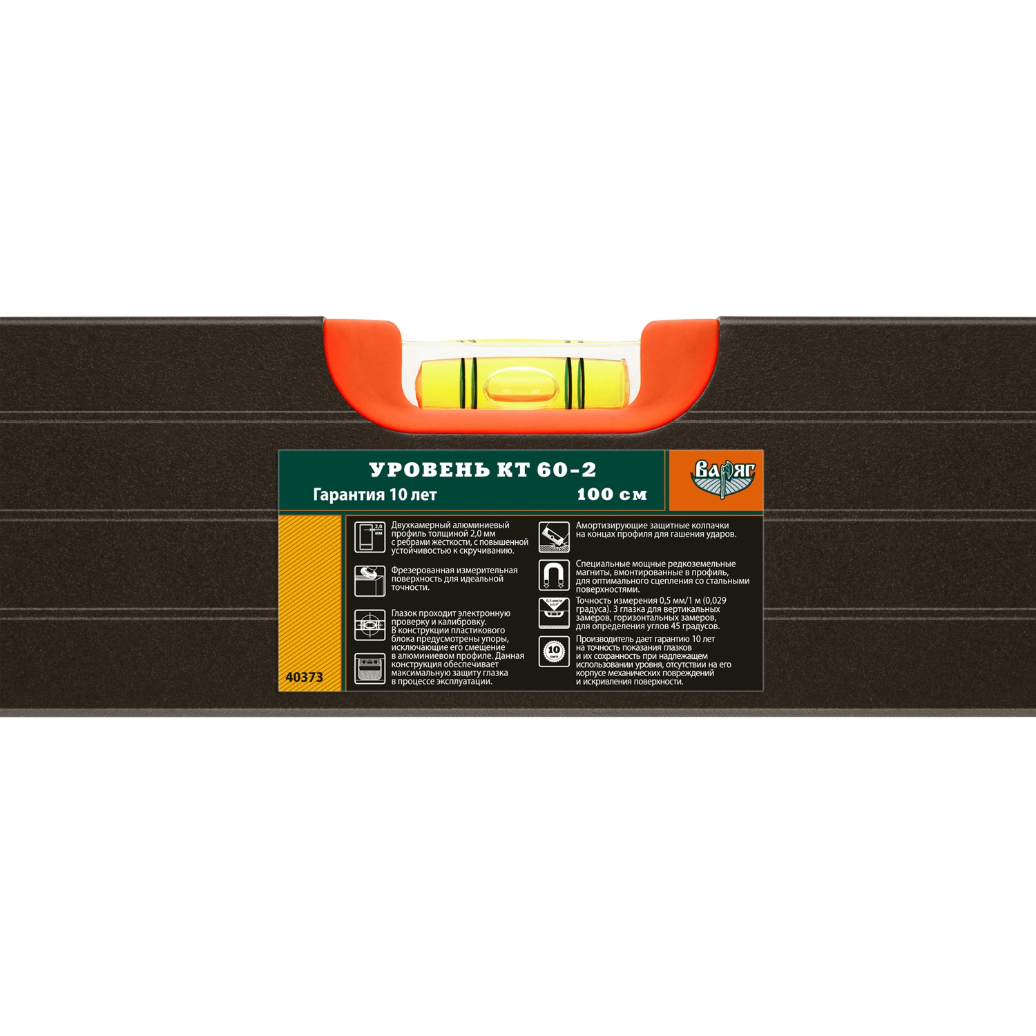 Уровень Варяг 40373 КТ 60-2 магнитный, усиленный, 3 глазка, 1000 мм