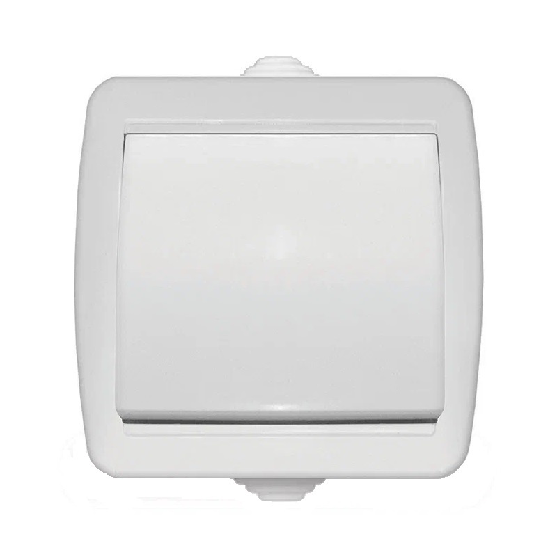 Выключатель о/у Клио К2221, 1 клавиша, б/инд, IP44, белый