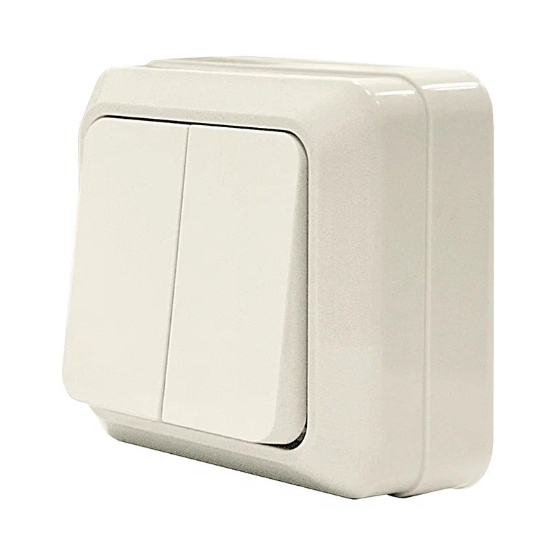 Двухклавишный выключатель открытой установки серии ОЛИМП, цвет слоновая кость.