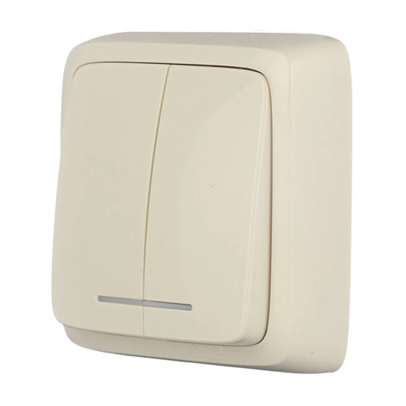 Выключатель о/у Alfa ВА10-154-01, 2 клавиши, с/инд, слоновая кость