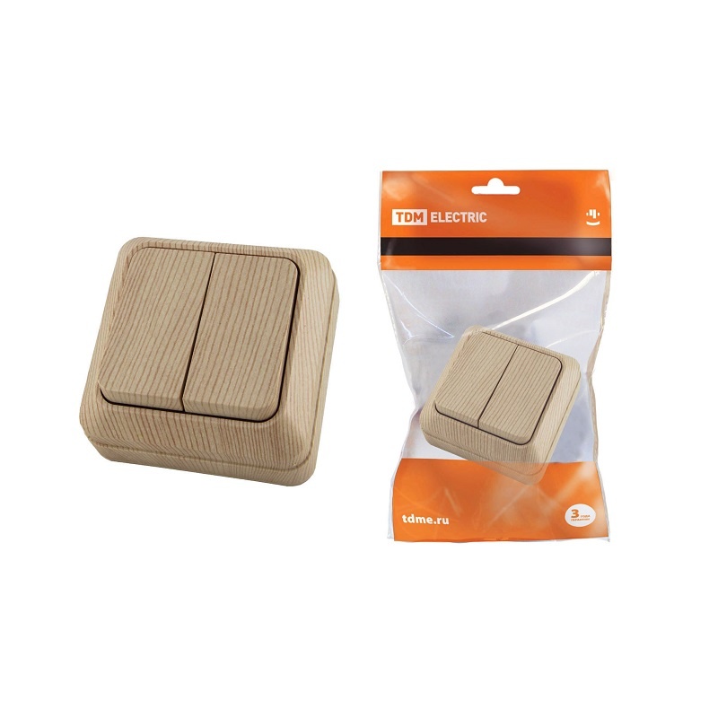 Выключатель о/у Ладога SQ1801-0044, 2 клавиши, б/инд, светлое дерево