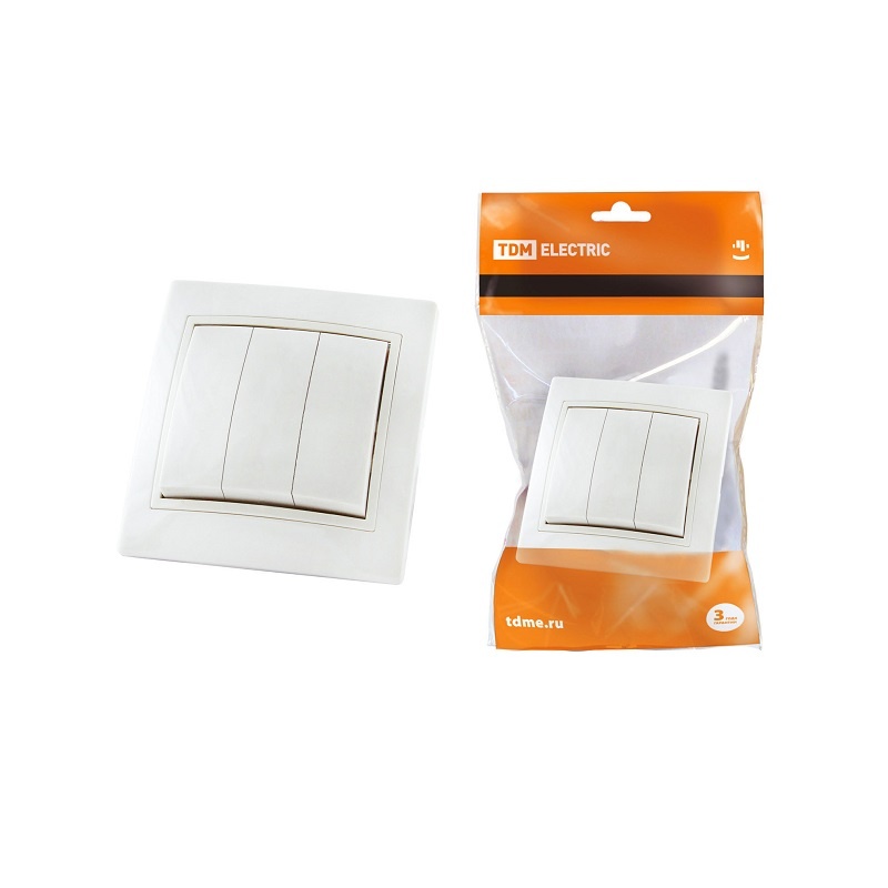 Выключатель с/у Таймыр SQ1814-0003, 3 клавиши, б/инд, белый